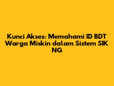 Yo, guys! Pernah dengar soal ID BDT Warga Miskin? Nah, ini penting banget buat kalian yang lagi ngurusin data kemiskinan di Indonesia. ID BDT ini, singkatan dari Basis Data Terpadu, adalah semacam nomor identitas unik buat setiap keluarga yang masuk dalam kategori miskin atau rentan. Fungsinya apa? Gampangnya gini, ini kayak KTP-nya orang miskin, tapi isinya lebih detail lagi soal data sosial ekonomi mereka. Jadi, kalau ada program bantuan sosial dari pemerintah, nah, ID BDT inilah yang jadi acuan utama buat nentuin siapa yang berhak nerima. Tanpa ID BDT yang valid, alamatnya bisa salah sasaran, kan? Makanya, pemahaman soal ini krusial banget, terutama buat kalian yang berkecimpung di dunia pendataan dan pelayanan sosial. Pentingnya ID BDT warga miskin itu bukan cuma soal angka, tapi soal memastikan bantuan itu sampai ke tangan yang tepat, bener-bener ke mereka yang membutuhkan. Bayangin aja, kalau data ini amburadul, bisa-bisa orang yang mampu malah dapet bantuan, sementara yang beneran susah malah gigit jari. Nah, di sinilah peran sistem SIK NG jadi sorotan. SIK NG ini sendiri merupakan singkatan dari Sistem Informasi Kesejahteraan Sosial Next Generation. Intinya, ini adalah platform digital yang dipakai pemerintah buat mengelola seluruh data kemiskinan dan kesejahteraan sosial di Indonesia. Jadi, semua data, mulai dari pendaftaran, verifikasi, sampai penyaluran bantuan, itu dikelola lewat sistem ini. Makanya, ID BDT di sistem SIK NG ini jadi kunci utama. Semua informasi terkait ID BDT warga miskin itu tersimpan rapi di dalam sistem SIK NG. Jadi, kalau ada yang mau cek status, update data, atau bahkan mengajukan permohonan baru, semuanya berpusat di sana. Tanpa ngerti gimana cara kerja sistem ini dan peran ID BDT di dalamnya, kalian bakal kesusahan banget dalam mengelola data kemiskinan. Artikel ini bakal ngajak kalian ngupas tuntas soal ID BDT warga miskin dan gimana dia berinteraksi dengan sistem SIK NG. Kita bakal bedah mulai dari apa itu ID BDT, kenapa penting, sampai gimana cara akses dan memanfaatkannya dalam sistem SIK NG. Dijamin, setelah baca ini, kalian bakal makin paham dan siap ngadepin tantangan pengelolaan data kemiskinan. Yuk, kita mulai petualangan kita di dunia data kemiskinan! Dijamin seru dan pastinya bermanfaat banget buat kalian semua.