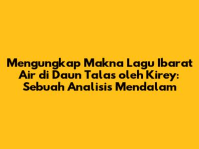 Halo, guys! Pernah nggak sih kalian dengerin lagu yang liriknya itu ngena banget sampai bikin kalian mikir, "Wah, ini tuh kayak ngomongin gue banget!" Nah, kali ini kita bakal bedah salah satu lagu yang punya makna mendalam dan relateable banget buat banyak orang, yaitu "Ibarat Air di Daun Talas" dari Kirey. Lagu ini, dengan melodi yang syahdu dan lirik yang puitis, berhasil menangkap perasaan banyak orang yang mungkin lagi berjuang dengan hubungan yang nggak pasti, atau merasakan cintanya nggak berbalas. Mari kita selami lebih dalam apa sih sebenernya yang mau disampaikan Kirey lewat lagu ini, dan kenapa lagu ini bisa jadi soundtrack buat banyak momen patah hati atau keraguan dalam sebuah hubungan. Kita akan kupas tuntas mulai dari makna harfiahnya, perumpamaan yang digunakan, sampai pesan yang bisa kita ambil sebagai pendengar. Siap-siap ya, bawa tisu kalau perlu, hehe. Kita akan mulai dari arti dari judulnya yang unik ini, "Ibarat Air di Daun Talas", yang sebenarnya merupakan sebuah peribahasa yang sudah cukup umum di Indonesia. Peribahasa ini seringkali digunakan untuk menggambarkan sesuatu yang tidak memberikan bekas, tidak menempel, atau tidak ada pengaruhnya sama sekali. Bayangkan saja air yang diteteskan ke atas daun talas, air tersebut akan langsung mengalir dan jatuh ke bawah tanpa terserap atau meninggalkan jejak. Nah, Kirey menggunakan perumpamaan ini untuk menggambarkan perasaannya dalam sebuah hubungan. Dia merasa cintanya, perasaannya, atau bahkan keberadaannya dalam hubungan itu tidak memberikan dampak apa-apa bagi pasangannya. Seolah-olah semua yang dia berikan, semua usahanya untuk menjaga hubungan, semua rasa sayangnya, itu semua sia-sia dan tidak meninggalkan bekas apa pun. Perasaan ini tentu sangat menyakitkan, bukan? Ketika kita mencurahkan seluruh hati dan tenaga kita untuk seseorang, tapi respons yang kita dapatkan justru seperti menepuk air di daun talas – tidak ada respons balik yang berarti, tidak ada perubahan, dan tidak ada kepastian. Lagu ini seolah menjadi suara hati bagi banyak orang yang pernah merasakan posisi serupa, di mana cinta mereka seakan menguap begitu saja tanpa meninggalkan jejak, membuat mereka bertanya-tanya, "Apa aku nggak penting buat dia?" atau "Kenapa semua usahaku nggak ada artinya?" Melalui lirik yang sederhana namun kuat, Kirey berhasil menggambarkan frustrasi dan kesedihan yang mendalam dari perasaan tidak dianggap dan tidak dihargai dalam sebuah hubungan. Ini bukan sekadar lagu cinta biasa, tapi lebih ke sebuah refleksi tentang dinamika hubungan yang timpang dan bagaimana rasanya ketika kita merasa sendirian dalam sebuah komitmen yang seharusnya dijalani berdua. Jadi, kalau kalian lagi merasa seperti ini, ingat, kalian nggak sendirian. Lagu ini hadir untuk menemani dan menjadi pengingat bahwa perasaan kalian valid, guys.
