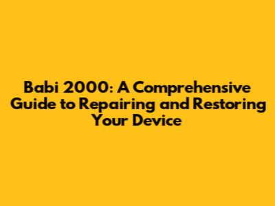 Babi 2000: The Ultimate Guide To Repair And Restoration