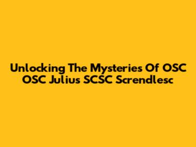 Unlocking The Mysteries Of OSC OSC Julius SCSC Screndlesc