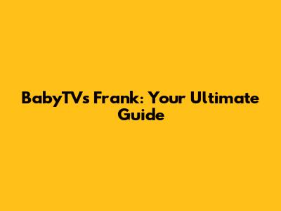 BabyTV's Frank: Your Ultimate Guide