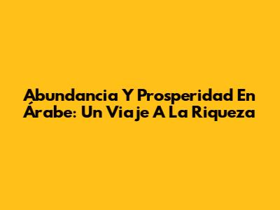 Abundancia Y Prosperidad En Árabe: Un Viaje A La Riqueza