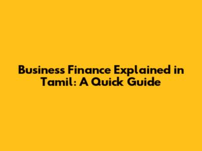 Business Finance Explained In Tamil: A Quick Guide