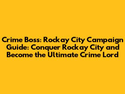 Alright guys, buckle up because we're diving deep into the gritty, neon-drenched streets of Crime Boss: Rockay City! If you're looking to conquer Rockay City and build your criminal empire from the ground up, you've come to the right place. This isn't just about pulling off heists; it's about strategy, smart decision-making, and outsmarting both the cops and your rivals. We'll break down the Crime Boss: Rockay City campaign mode, giving you the intel you need to rise through the ranks and become the undisputed kingpin. So, grab your favorite beverage, get comfortable, and let's talk about how to dominate this chaotic urban landscape.