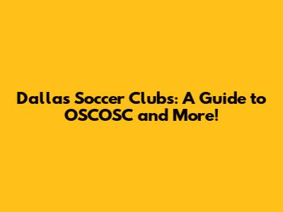 Dallas Soccer Clubs: A Guide To OSCOSC And More!
