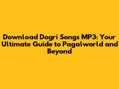 Pagalworld and Other Platforms: Your Gateway to Dogri Songs