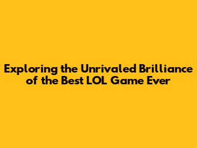 Exploring The Unrivaled Brilliance Of The Best LOL Game Ever