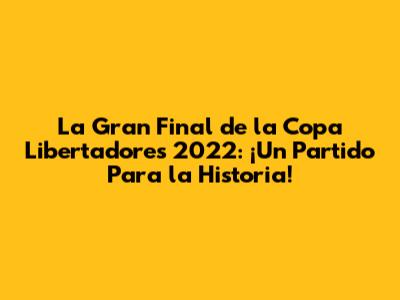隆Hola, fan谩ticos del f煤tbol! Prep谩rense porque vamos a revivir uno de los momentos m谩s emocionantes del f煤tbol sudamericano: la final de la Copa Libertadores 2022. Este partido no fue solo un encuentro deportivo m谩s; fue una batalla 茅pica, un choque de titanes que mantuvo al continente entero al borde de sus asientos. Hablamos de un duelo que ser谩 recordado por generaciones, un encuentro lleno de drama, pasi贸n y, por supuesto, f煤tbol de alt铆simo nivel. Si eres un apasionado del deporte rey y te encanta la historia de la Copa Libertadores, este art铆culo es para ti. Vamos a desglosar todo lo que rode贸 a esta final inolvidable, desde los equipos que llegaron hasta los momentos clave que definieron el campeonato. 隆Abr贸chate el cintur贸n, que arrancamos este viaje por la gloria continental!