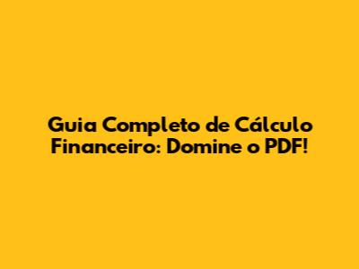 Hey pessoal! Se você está aqui, provavelmente está buscando dominar o universo do cálculo financeiro, certo? E a boa notícia é que você chegou ao lugar certo! Neste guia completo, vamos mergulhar fundo no fascinante mundo do cálculo financeiro, explorando tudo o que você precisa saber para se tornar um expert no assunto. E, claro, vamos dar um foco especial em como utilizar um manual de cálculo financeiro em PDF para otimizar seus estudos e suas aplicações práticas. Prepare-se para uma jornada cheia de conhecimento, dicas e exemplos práticos para você se sentir seguro e confiante ao lidar com finanças.