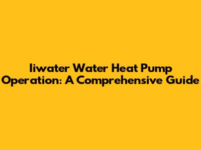 Iiwater Water Heat Pump Operation: A Comprehensive Guide