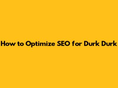 How To Optimize SEO For Durk Durk