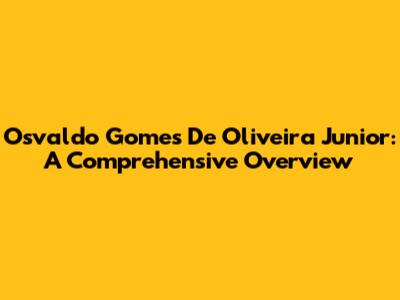 Osvaldo Gomes De Oliveira Junior: A Comprehensive Overview