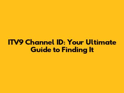 ITV9 Channel ID: Your Ultimate Guide To Finding It