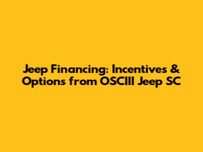 Alright, Jeep enthusiasts! Let’s dive into the world of Jeep financing, specifically looking at what OSCIII Jeep SC has to offer. If you're dreaming of hitting the trails or cruising around town in a shiny new Jeep, understanding your financing options is super important. We're going to break down the incentives, the process, and everything you need to know to make an informed decision. Ready to roll?