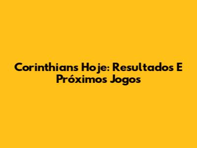 Corinthians Hoje: Resultados E Próximos Jogos