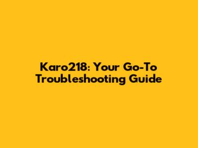 Karo218: Comprehensive Troubleshooting Guide