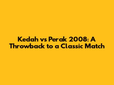 Kedah Vs Perak 2008: A Throwback To A Classic Match