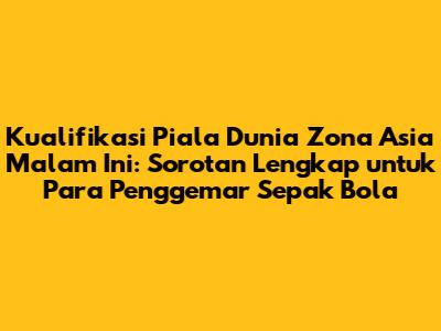 Kualifikasi Piala Dunia Zona Asia malam ini menjadi topik hangat di kalangan pecinta sepak bola. Bagi kalian para penggemar setia, pasti sudah tidak sabar menantikan aksi tim-timnas terbaik Asia dalam perebutan tiket menuju panggung sepak bola dunia. Artikel ini akan menyajikan informasi lengkap, mulai dari jadwal pertandingan, profil tim, hingga prediksi menarik seputar laga yang akan berlangsung. Mari kita bedah bersama-sama!