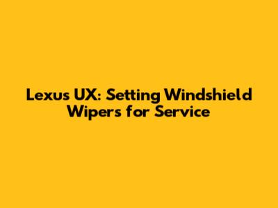 Lexus UX: Setting Windshield Wipers For Service