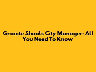 Granite Shoals City Manager: All You Need To Know