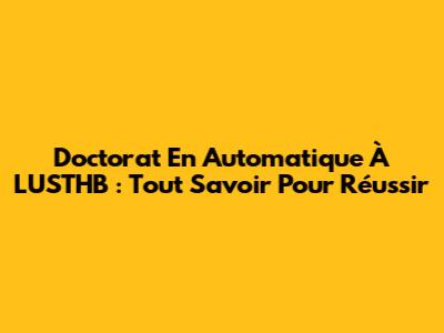 Doctorat En Automatique À L'USTHB : Tout Savoir Pour Réussir