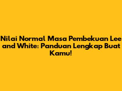 Hey guys! Pernah dengar soal tes pembekuan darah, terutama yang pakai metode Lee and White? Mungkin kamu pernah dengar atau malah lagi cari tahu buat keperluan medis atau sekadar penasaran. Nah, kali ini kita bakal kupas tuntas soal nilai normal masa pembekuan metode Lee and White. Penting banget nih buat kita pahami, soalnya ini berkaitan langsung sama kesehatan kita, terutama fungsi pembekuan darah. Jangan sampai ketinggalan info penting ini, ya!