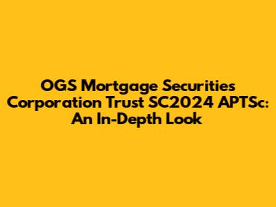 The "OGS Mortgage Securities Corporation" part tells us who is behind this trust. It's likely a corporation specializing in creating and managing these types of securities. The "SC2024" likely refers to the year the trust was formed or when the securities were issued. And "APTSC" could be a specific identifier for this particular pool of mortgages. It’s essential to recognize that these trusts are created for a specific purpose: to provide a vehicle for investors to participate in the mortgage market without directly originating or servicing loans. The trust acts as an intermediary, holding the mortgages and distributing the cash flows (principal and interest payments) from those mortgages to the security holders.