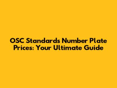OSC Standards Number Plate Prices: What You Need To Know