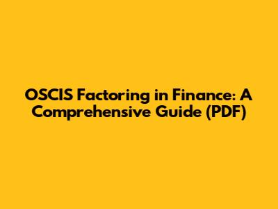 OSCIS Factoring In Finance: A Comprehensive Guide (PDF)