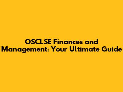 OSCLSE Finances And Management: Your Ultimate Guide