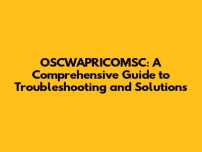 Common OSCWAPRICOMSC Issues and How to Solve Them