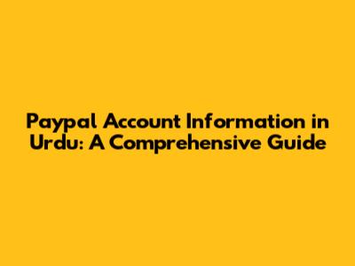 Paypal Account Information Guide In Urdu