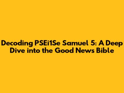 Hey everyone! Today, we're diving headfirst into a fascinating exploration of PSEi1Se Samuel 5 within the Good News Bible. This isn't just about reading a chapter; it's about uncovering the layers of meaning, the historical context, and the sheer power of the narrative. So, grab your Bibles, settle in, and let's get started. We'll break down the key elements of PSEi1Se Samuel 5, and hopefully, by the end of this, you'll have a much deeper appreciation for this impactful part of scripture.