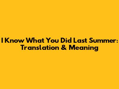 I Know What You Did Last Summer: Translation & Meaning