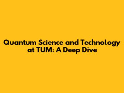 Quantum Science & Technology At TUM: A Deep Dive