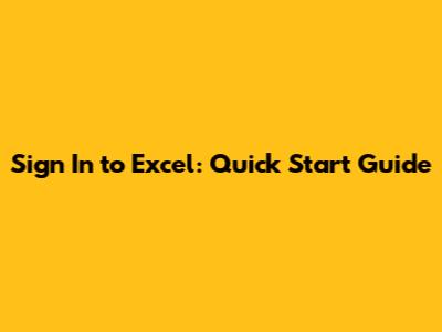 Sign In To Excel: Quick Start Guide