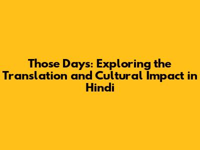 Those Days: English To Hindi Translation & Cultural Impact