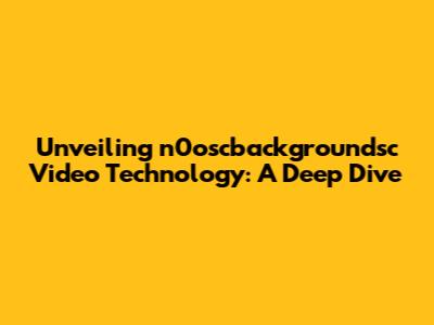 Unveiling N0oscbackgroundsc Video Technology: A Deep Dive