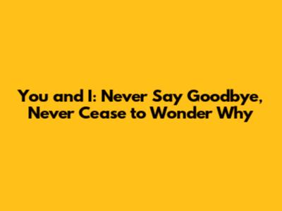 You And I: Never Say Goodbye, Never Cease To Wonder Why